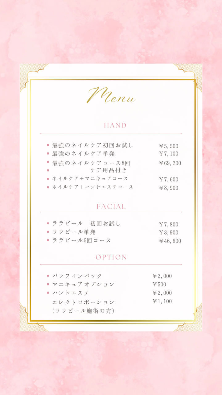| ハンドジェルオフ(他店 付け替え) | 1500円 |